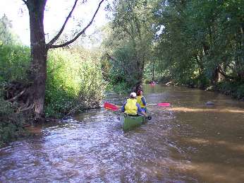 Der Glan Der Glan ist in seinem gesamten Verlauf ein eher ruhig dahin fließender Wiesen- und Kanu-Wanderfluß, der aber trotzdem eine gute Strömung aufweist. Viele Kurven, kleine Schwälle und Stufen sorgen für Abwechslung, stellen jedoch keine besonderen Schwierigkeiten dar. Im Sommer ist auch Mal mit einer flachen Stelle zu rechnen, an der das Kanu ein paar Meter geschoben werden muß. Die dort vorhandenen Wehre lassen sich meist problemlos umtragen. Lediglich die Umtragung in Meisenheim ist etwas aufwändiger, hier ist es nötig, das Kanu 1x kurz über eine kleine Mauer zu heben. Danach durch die dort vorhandene Ausschilderung und unseren Kanuwagen auch gut zu meistern. Der Glan ist ein idealer Fluß für Anfänger oder den Naturgenießer unter den Paddlern. In der reizvollen Landschaft des Nord Pfälzer Berglandes gelegen, durchfließt er das äußerst reizvolle Glantal. Weite Strecken des Ufers sind von Bäumen bewachsen, man paddelt manchmal in einer fast urwaldartigen Landschaft. Man steigt in das Boot, lässt sich durch die weitläufige Wiesenlandschaft treiben, durchfährt einige interessante Schwälle, um sich dann wieder vom Zauber des schönen Tals einfangen zu lassen. In den malerischen Ortschaften, die man durchfährt, bekommt man Einblicke in idyllische Hinterhöfe und liebevoll angelegte Gärten. Wenn Sie schon einen guten Teil des weges zurückgelegt haben, erreichen Sie das Städtchen Meisenheim. Besuchen Sie auch die sehenswerte Stadt Meisenheim, die mit einer schönen Altstadt aufwarten kann. Verwinkelte Gassen, alte Fachwerkhäuser, oder ein Gang entlang der Stadtmauer laden zum Erkunden ein. Gute Restaurants, schöne Cafes und idyllische Picknickplätze direkt am Glan laden zum Verweilen ein. Hinter Meisenheim weitet sich das Tal und Weinberge säumen nun die Talränder bis zur Mündung des Glans in die Nahe. Bei gutem Wasserstand ist eine Weiterfahrt noch ca. 6 km bis nach Oberhausen möglich. |
